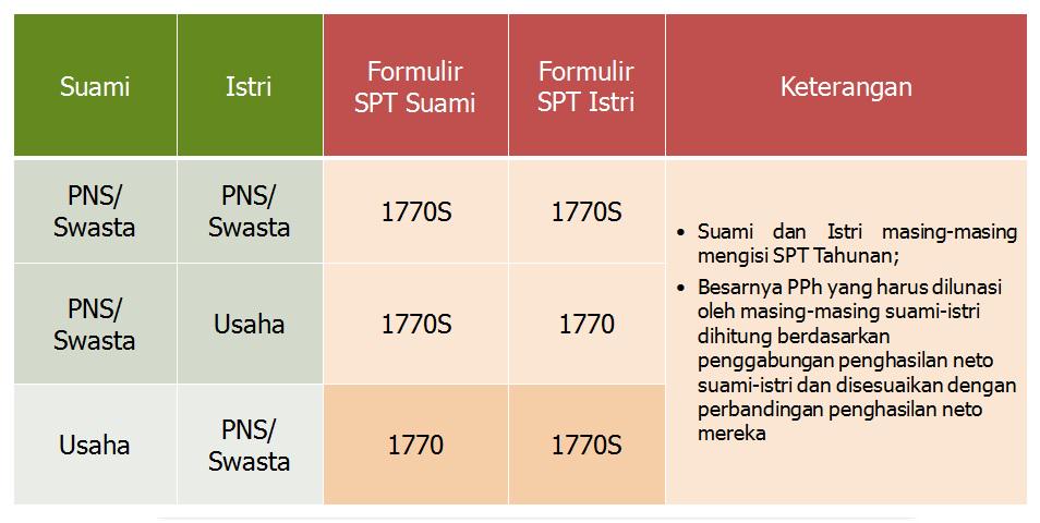 -- Penghitungan PPh terutang untuk PH dan MT adalah dengan cara penggabungan penghasilan suami dan istri --